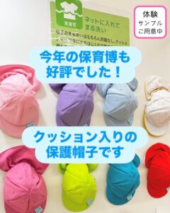 「園に持ち帰って、職員会議で紹介したいです」「実際にかぶってみる体験をしてから検討したいです」とおっしゃって、体験サンプルをご希望くださる方も多くいらっしゃいました。具体的な運用イメージを持ちながら検討していただけるのは、私たちにとっても、とてもありがたいことです。体験サンプルは保育博終も、引き続きお送りしております。
